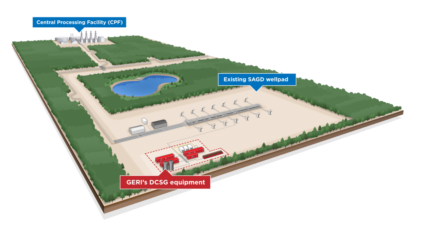 Because of the extremely high viscosity of bitumen, and generally low reservoir pressure, adding heat and re-pressurization are essential to recovering the oil. GERI’s co-injector delivers temperature and pressure with low greenhouse gases and offers operational benefits to previous GOB pilot projects.